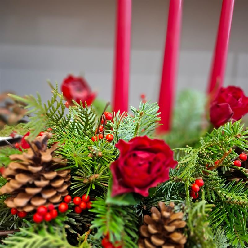 Con conifera, elementi decorativi, fiori e candele per rallegrare e rendere più luminosa la vostra tavola.